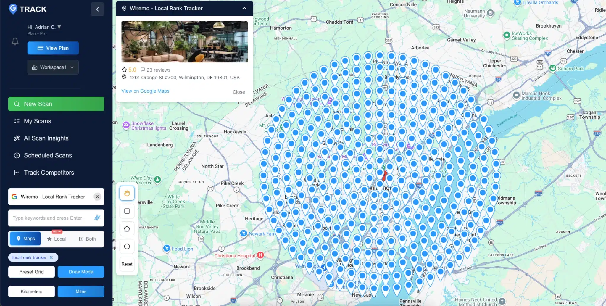 A local rank tracker shows you this geographic variation through what's called a geo-grid, a grid of ranking data points across your target area. Without this visibility, your local SEO strategy is based on guesswork.